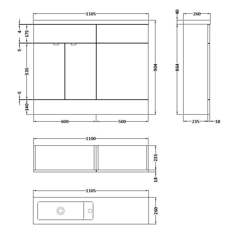 Arno 1100mm Combination Vanity Basin and Toilet Unit | Product Image