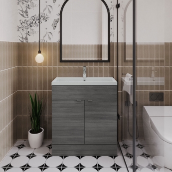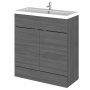 Hudson Reed Fusion 800mm 2-Door Floor Standing Vanity Unit - Anthracite - Polymarble
