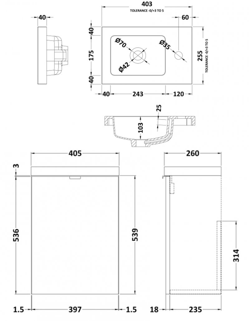 - Clever modular vanity unit design with slimline depth to fit into tight and awkward bathroom spaces