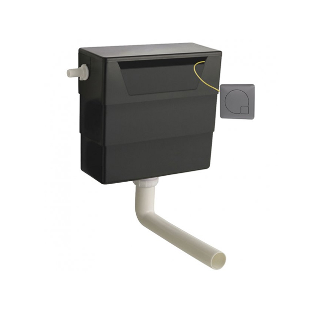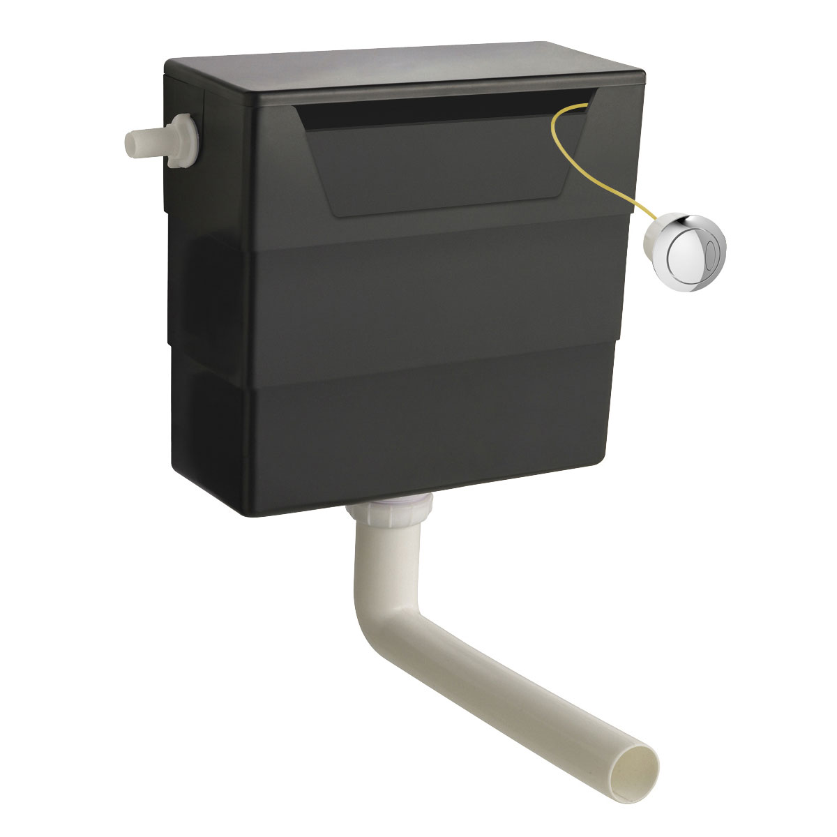 Nuie Front and Top Access Concealed Toilet Dual Flush Cistern with Black Flush Plate