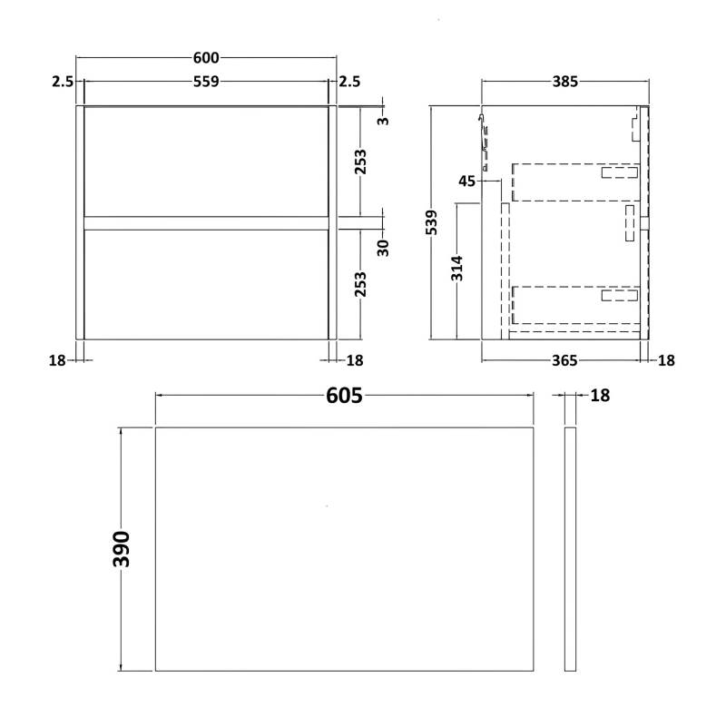 - Cabinet carcass and door/drawer fronts all manufactured from 18mm MFC