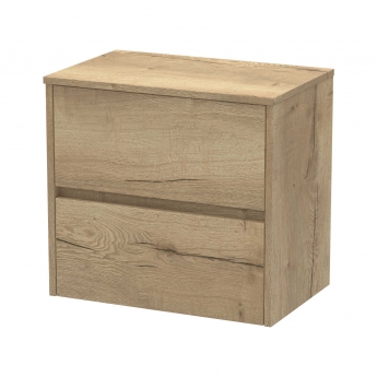 Nuie Havana 600mm 2-Drawer Wall Hung Vanity Unit with Countertop - Autumn Oak - Colour-Matched