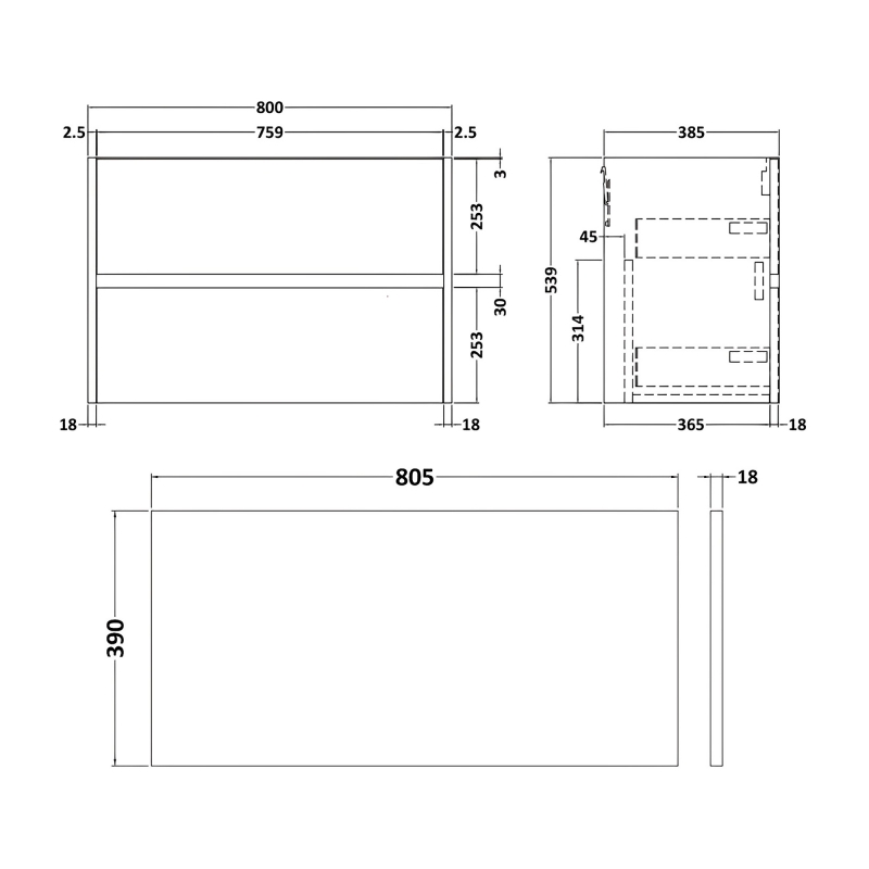 • Cabinet carcass and door/drawer fronts all manufactured from 18mm MFC