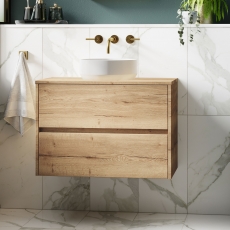 Nuie Havana 800mm 2-Drawer Wall Hung Vanity Unit with Countertop - Autumn Oak - Colour-Matched