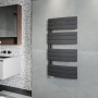 Looking for something a bit different from the standard chrome ladder style towel rail? This Hudson Reed Elgin towel rail certainly ticks the "unusual" box. It's an unusual and contemporary design, which would be a real statement in any family bathroom. The finish is anthracite, a very dark shade of grey, and the perfect contrast to white sanitaryware and chrome taps. Despite the unconventional design, this style of towel rail is just as effective at keeping your bathroom warm and your towels cosy as any other style of rail.