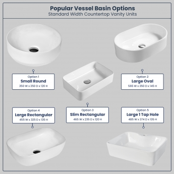 • Vanity Unit and Countertop only - vessel basin, traps and waste are sold separately