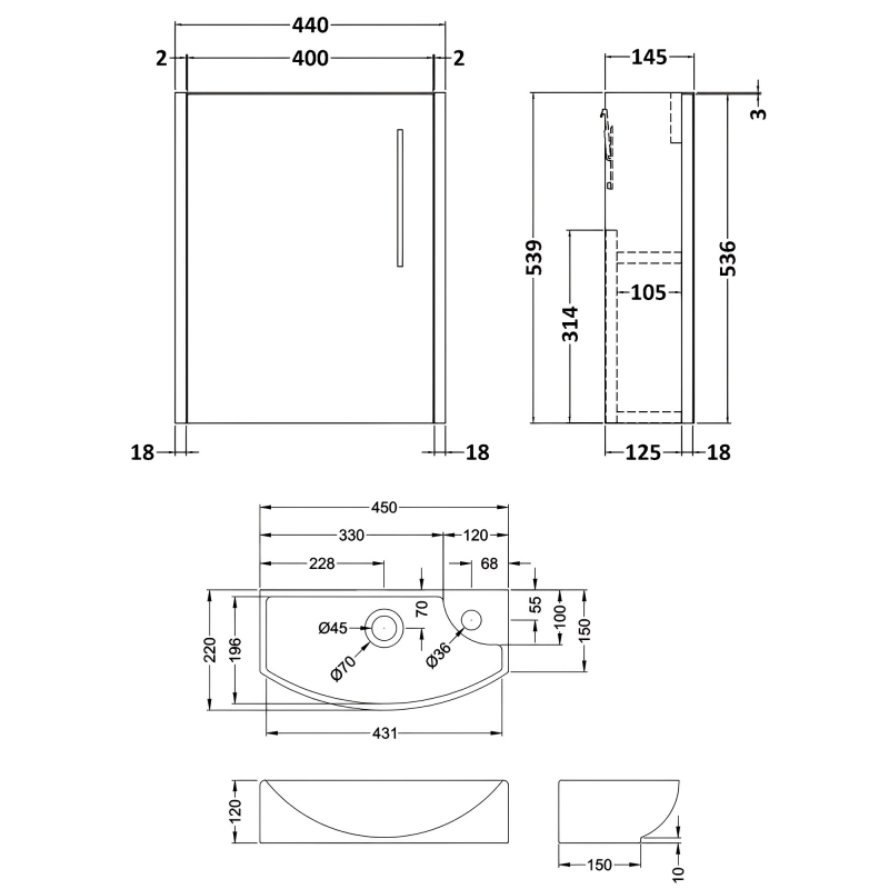 • Cabinet carcass and door/drawer fronts all manufactured from 18mm MFC