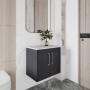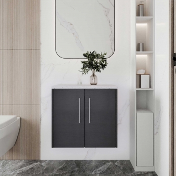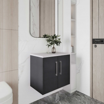 Hudson Reed Juno 600mm 2-Door Wall Hung Vanity Unit with Countertop - Graphite Grey - White Sparkle
