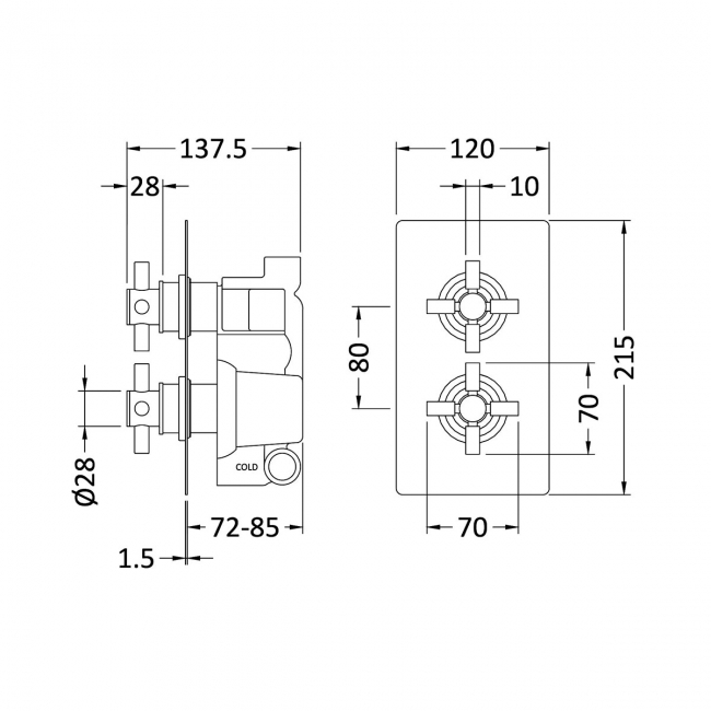 Hudson Reed Kristal Crosshead Concealed Shower Valve Dual Handle - Chrome | Thumbnail Image Hudson Reed Kristal Crosshead Concealed Shower Valve Dual Handle - Chrome