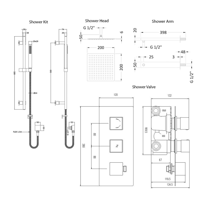 • Comes complete with Slide Rail Kit, Shower Valve, Shower Arm, Fixed Shower Head and Pencil Handset