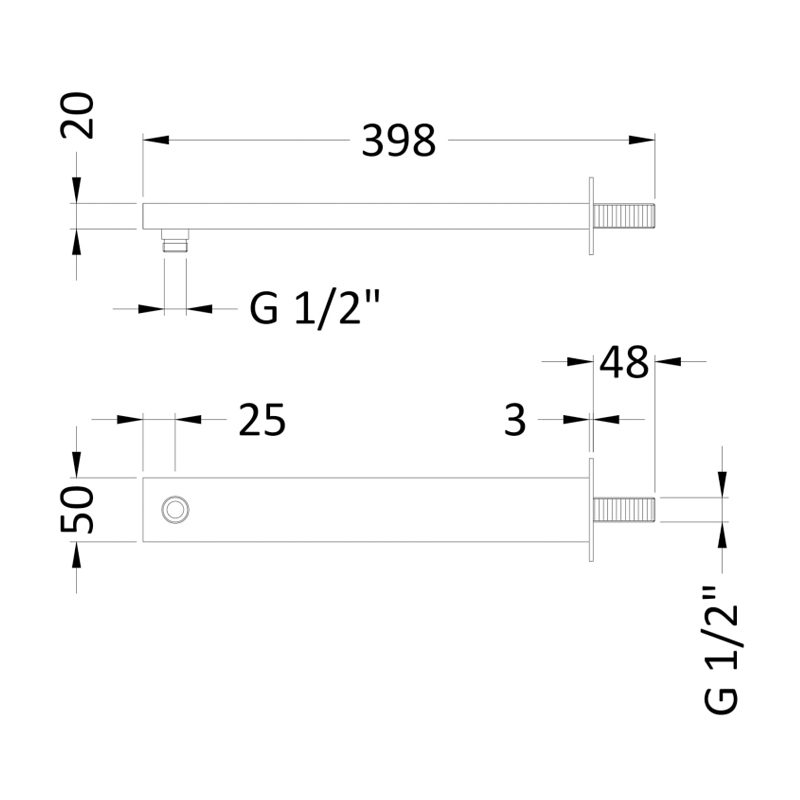Hudson Reed Large Rectangular Wall Mounted Shower Arm 398mm Length - Chrome | Thumbnail Image Hudson Reed Large Rectangular Wall Mounted Shower Arm 398mm Length - Chrome