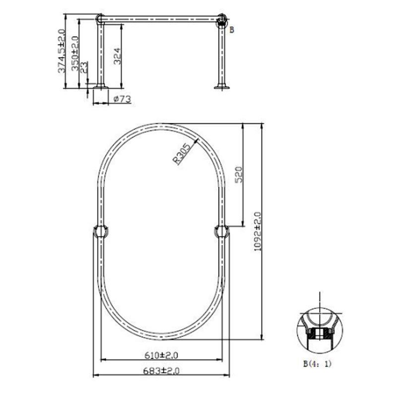 Hudson Reed Traditional Oval Shower Curtain Rail 1092mm x 686mm - Chrome | Product Image Hudson Reed Traditional Oval Shower Curtain Rail 1092mm x 686mm - Chrome