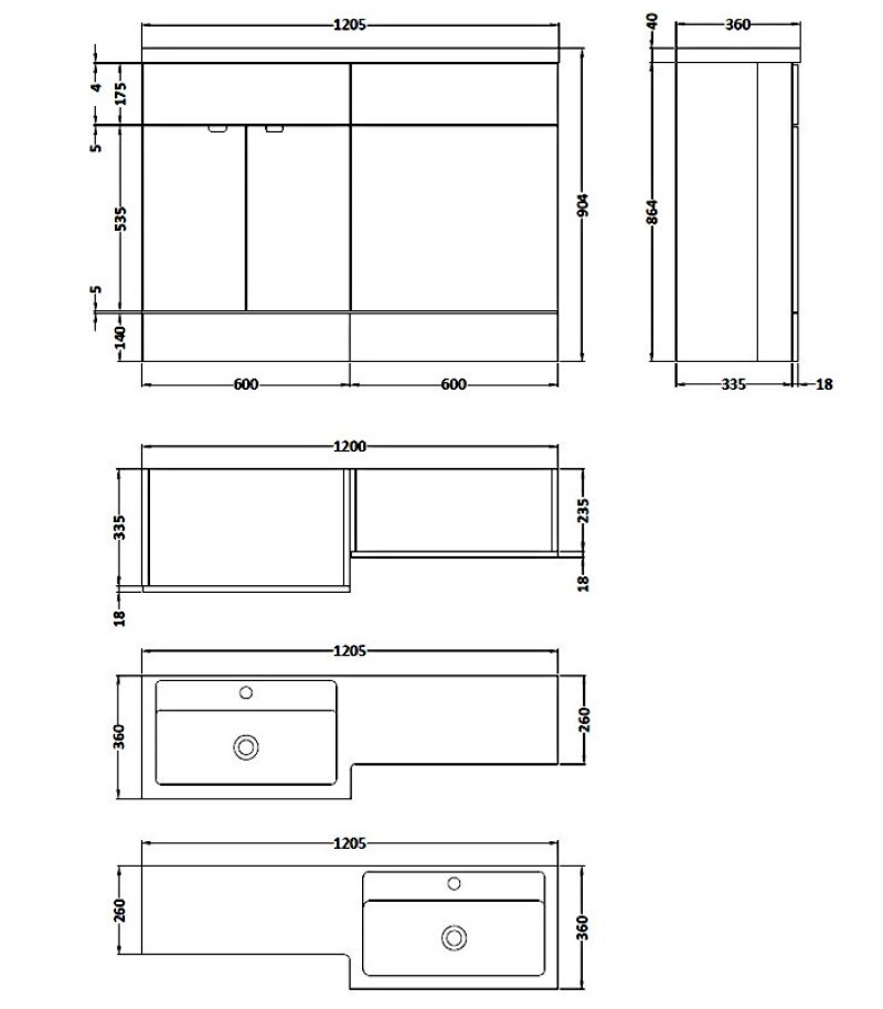Furniture Width (Unit + Basin)1205mm