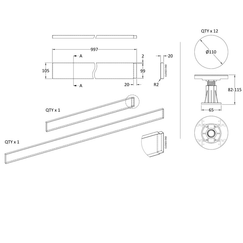 Nuie Shower Tray Riser Kit (105mm High) for 1300-1800mm Rectangular Trays - White | Thumbnail Image Nuie Shower Tray Riser Kit (105mm High) for 1300-1800mm Rectangular Trays - White