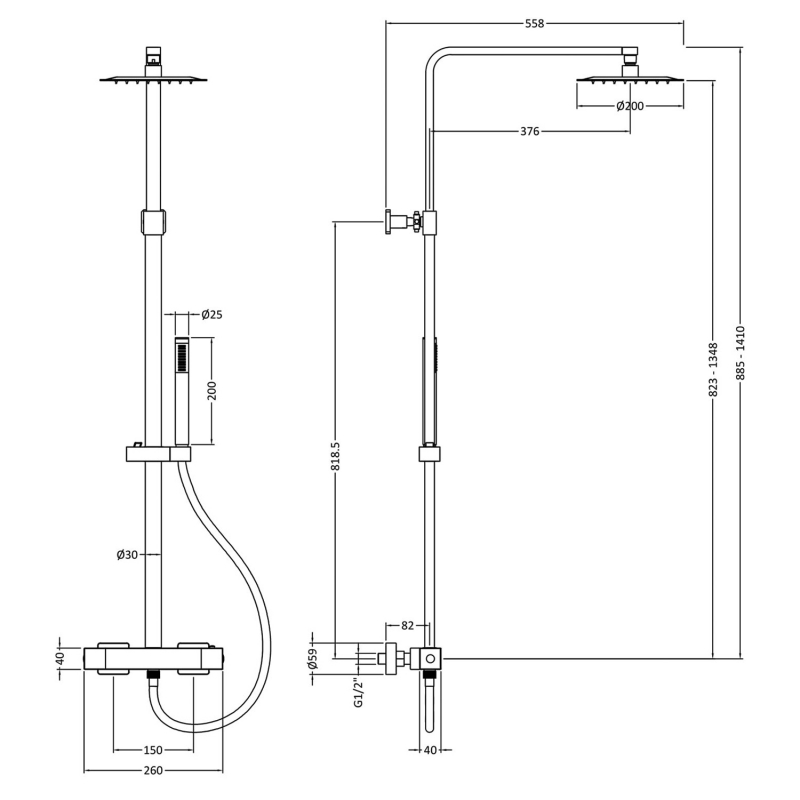 • To install the shower you will require 2 x 1/2" Female Iron fittings in the wall, it will not fit directly onto 15mm pipes
