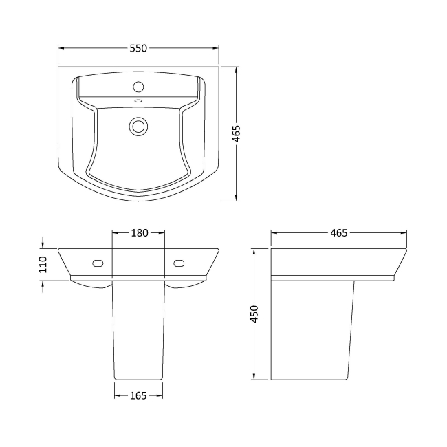 Hudson Reed Maya Basin with Semi Pedestal 550mm Wide - 1 Tap Hole