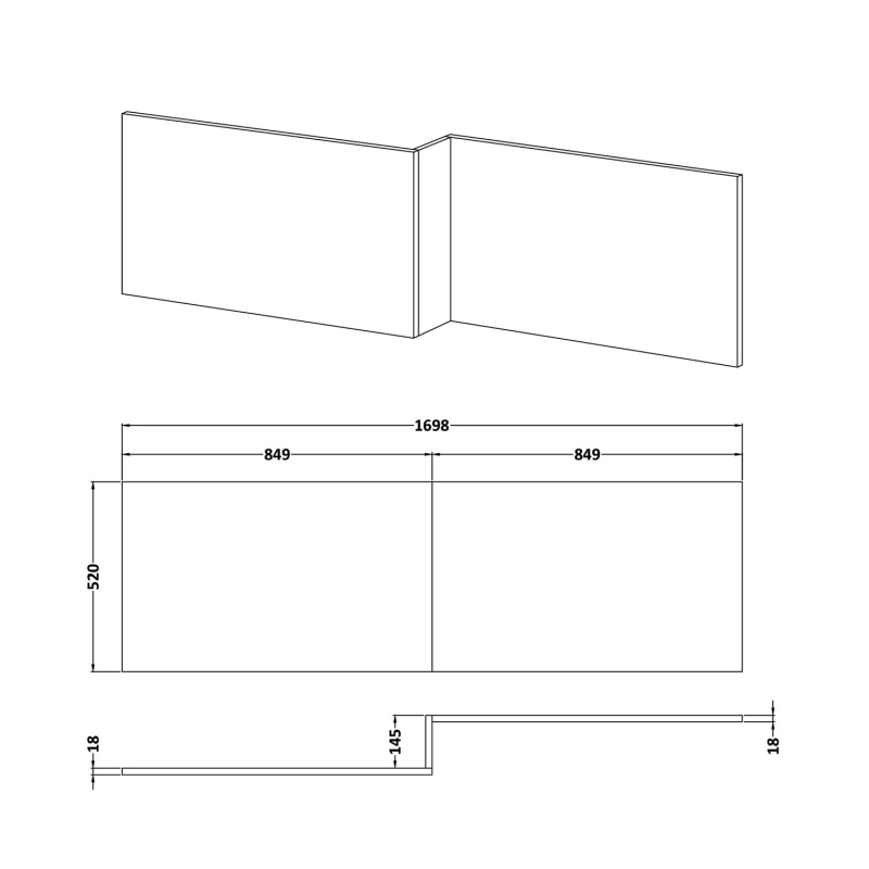 Hudson Reed MFC Shower Bath Front Panel 520mm H x 1700mm W - Charcoal Black Woodgrain | Thumbnail Image Hudson Reed MFC Shower Bath Front Panel 520mm H x 1700mm W - Charcoal Black Woodgrain