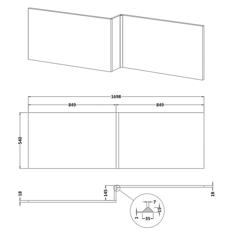 Hudson Reed MFC Shower Bath End Panel 540mm H x 700mm W - Coastal Grey