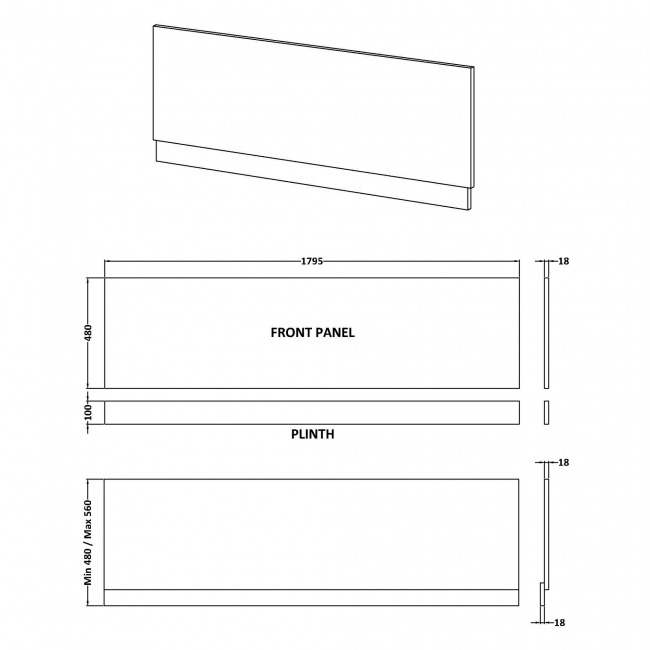 Hudson Reed MFC Straight Bath Front Panel and Plinth 560mm H x 1800mm W - Pebble Grey | Thumbnail Image Hudson Reed MFC Straight Bath Front Panel and Plinth 560mm H x 1800mm W - Pebble Grey