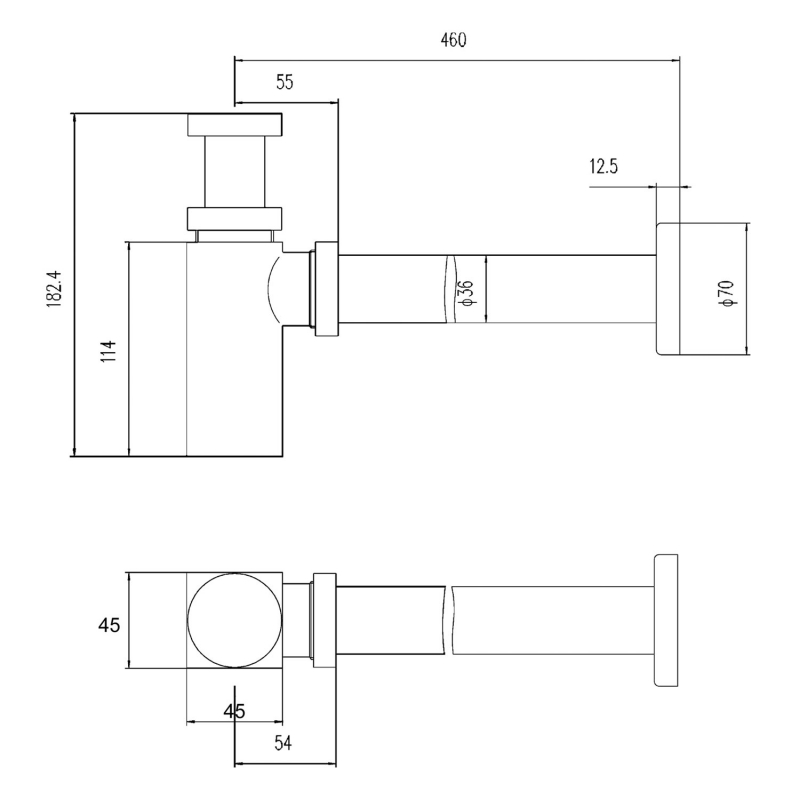 • 1 1/4 inch Minimalist Square Bottle Trap