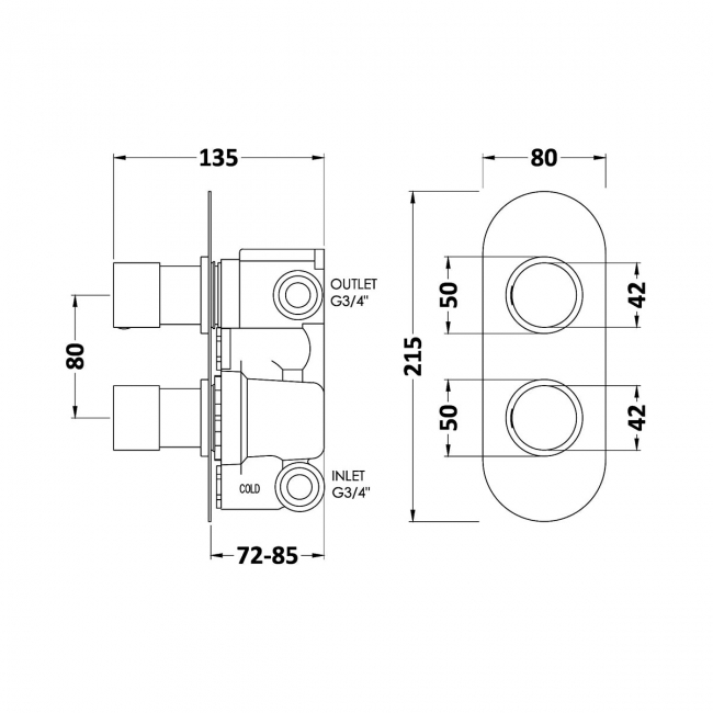 Hudson Reed Round Concealed Shower Valve with Diverter Dual Handle - Chrome | Thumbnail Image Hudson Reed Round Concealed Shower Valve with Diverter Dual Handle - Chrome