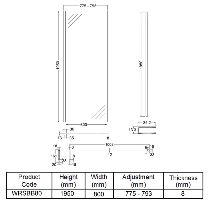 Hudson Reed Wet Room Screen with Brass Support Bar 800mm Wide - 8mm Glass | Product Image Hudson Reed Wet Room Screen with Brass Support Bar 800mm Wide - 8mm Glass | Product Image Hudson Reed Wet Room Screen with Brass Support Bar 800mm Wide - 8mm Glass