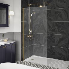 Hudson Reed Wet Room Screen with Brass Support Bar 800mm Wide - 8mm Glass