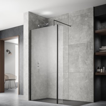 Hudson Reed Minimal Black 1950mm Wet Room Glass Shower Screen | Product Image