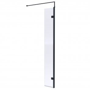 Hudson Reed Wet Room Fixed Return Panel with Black Profile 215mm Wide - 8mm Glass