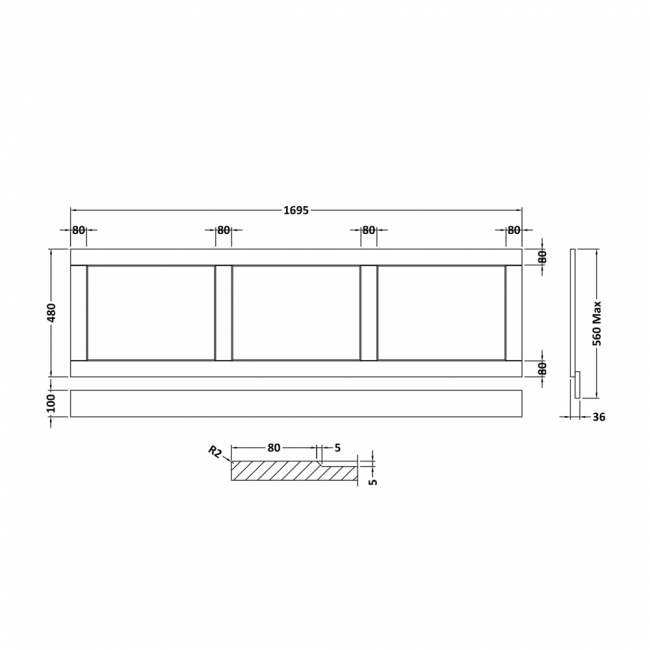 Hudson Reed Old London Bath Front Panel 560mm H x 1695mm W - Twilight Blue | Thumbnail Image Hudson Reed Old London Bath Front Panel 560mm H x 1695mm W - Twilight Blue
