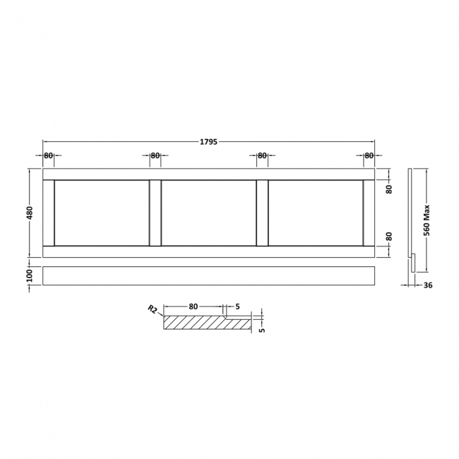Hudson Reed Old London Bath Front Panel 560mm H x 1795mm W - Timeless Sand | Thumbnail Image Hudson Reed Old London Bath Front Panel 560mm H x 1795mm W - Timeless Sand