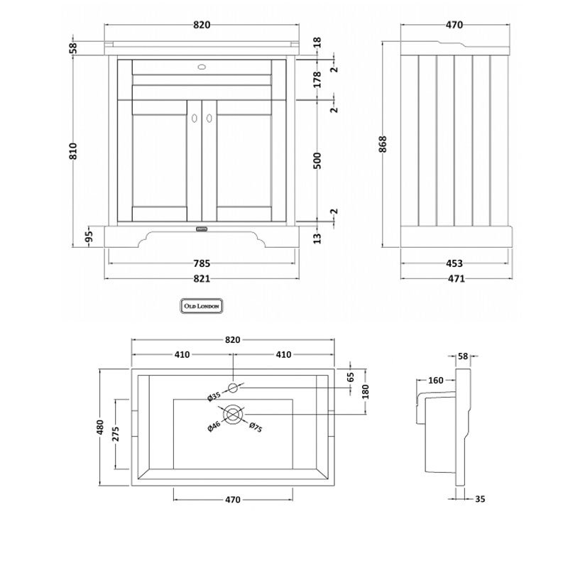 - Compatible with matching WC units, mirrors, cabinets, bath panels and toilet seats within the Old London collection