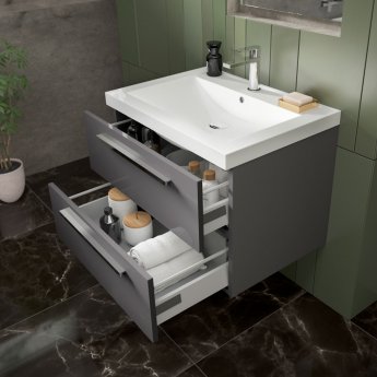 The smaller brother of the 4-drawer Quartet vanity unit, this 2-drawer version boasts the same stylish design but in a smaller width, allowing co-ordination of the Quartet design throughout other bathrooms in the home. Like the twin Quartet unit, this model includes soft-closing drawers and comes with the option of 3 distinct finishes to give your bathroom a design-led edge.