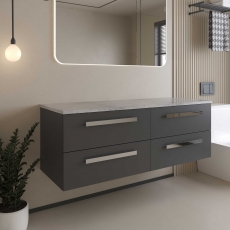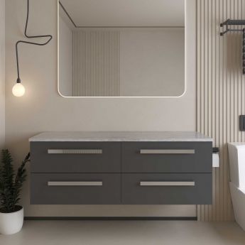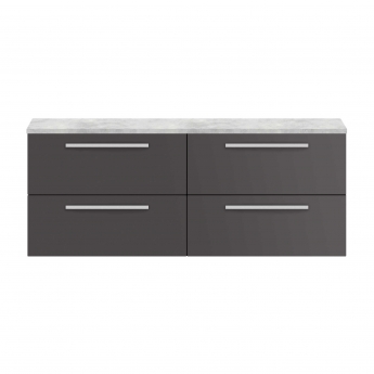 Hudson Reed Quartet 1440mm 4-Drawer Wall Hung Vanity Unit with Countertop - Gloss Grey - Bellato Grey