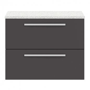 Hudson Reed Quartet 720mm 2-Drawer Wall Hung Vanity Unit with Countertop - Gloss Grey - White Sparkle