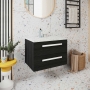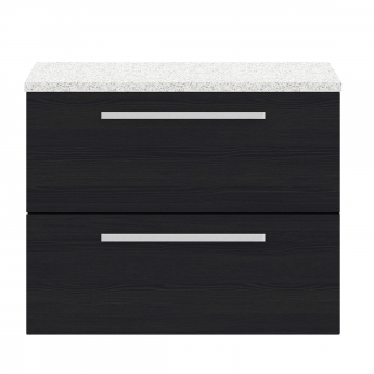 Hudson Reed Quartet 720mm 2-Drawer Wall Hung Vanity Unit with Countertop - Charcoal Black - White Sparkle