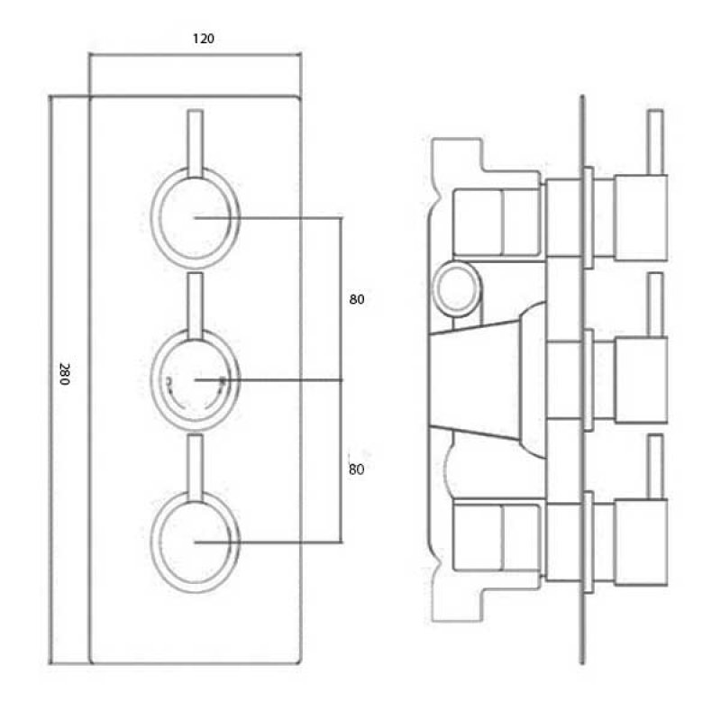 Hudson Reed Quest Concealed Shower Valve Triple Handle - Chrome | Thumbnail Image Hudson Reed Quest Concealed Shower Valve Triple Handle - Chrome