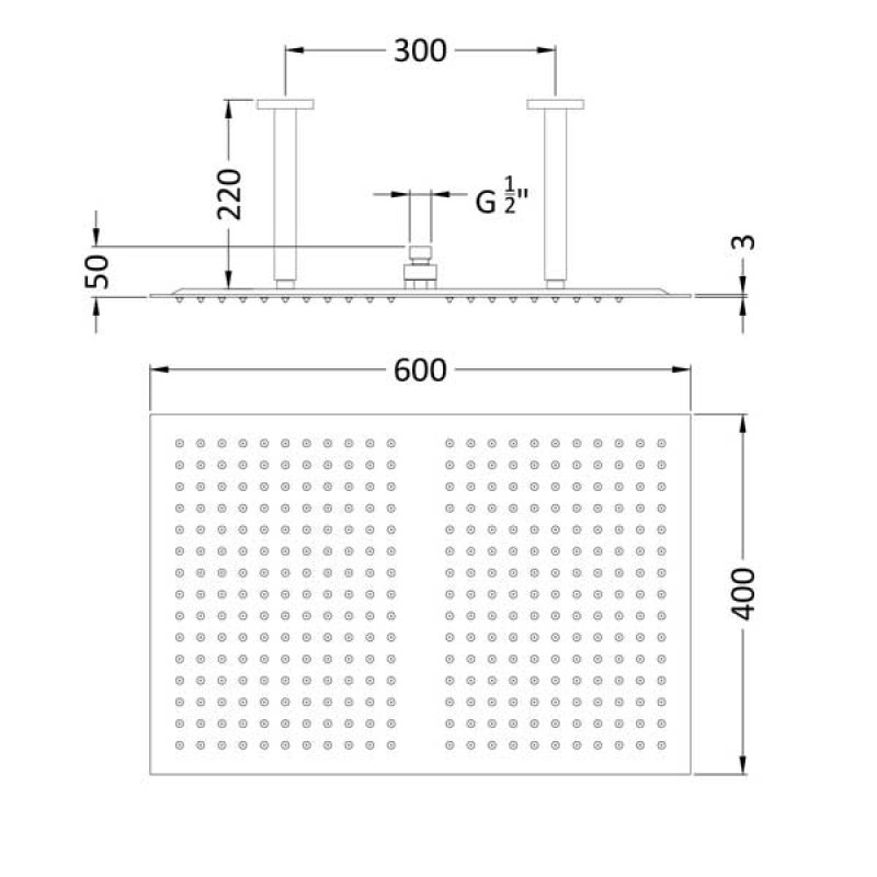 Hudson Reed Rectangular Ceiling Mounted Shower Head And Ceiling Arm 600mm x 400mm - Chrome | Thumbnail Image Hudson Reed Rectangular Ceiling Mounted Shower Head And Ceiling Arm 600mm x 400mm - Chrome