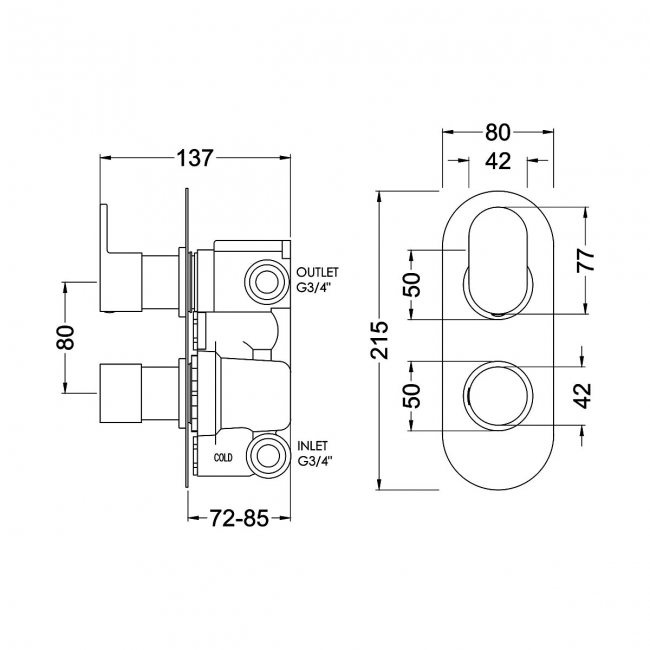 Shower Valve Depth72 - 85mm