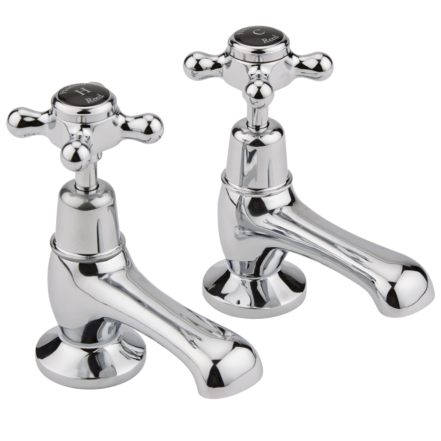 Hudson Reed Topaz Black Crosshead Basin Taps Dome Collar