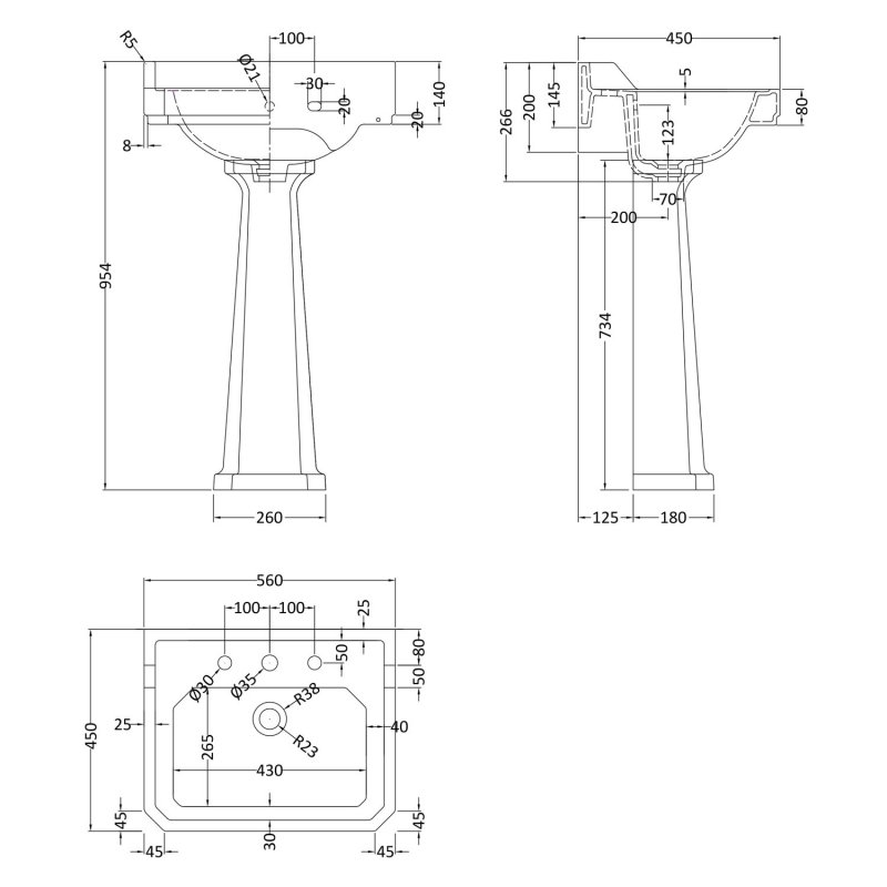 • Supplied with a full pedestal for a classic look
