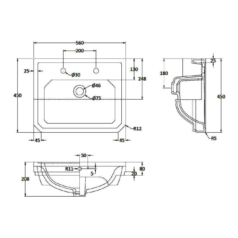 • Supplied with a pre-drilled two tap hole suitable for a standard pair of basin taps