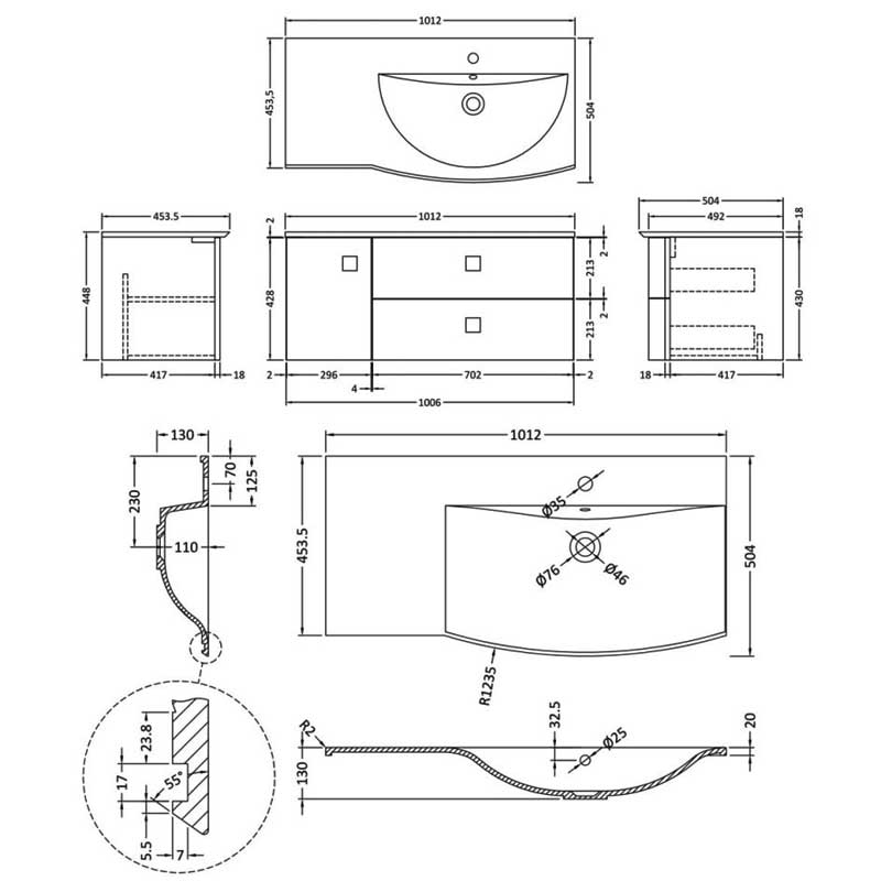 - Includes beautiful curved polymarble basin with a slimline 18mm profile (right handed)
