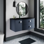 • Luxurious curved-front vanity unit design providing functional storage and eye-catching aesthetics