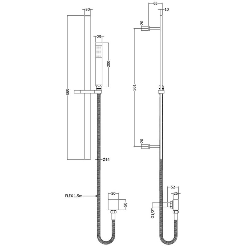 - Comes complete with Rectangular Shower Handset, Shower Hose and Outlet Elbow
