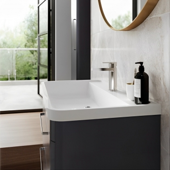 Hudson Reed's Solar collection of bathroom furniture is characterised by a strong, super matt finish, paired with the soft square contours of the gently-curved basin unit. Available in a choice of bold colours, and with the option of a ceramic or polymarble basin to complete the look, the Solar vanity unit makes an instant impact in a contemporary bathroom.