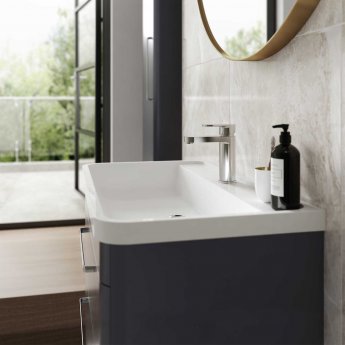 Hudson Reed's Solar collection of bathroom furniture is characterised by a strong, super matt finish, paired with the soft square contours of the gently-curved basin unit. Available in a choice of bold colours, and with the option of a ceramic or polymarble basin to complete the look, the Solar vanity unit makes an instant impact in a contemporary bathroom.