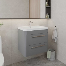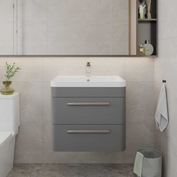 Hudson Reed Solar 600mm 2-Drawer Wall Hung Vanity Unit - Cool Grey - Polymarble