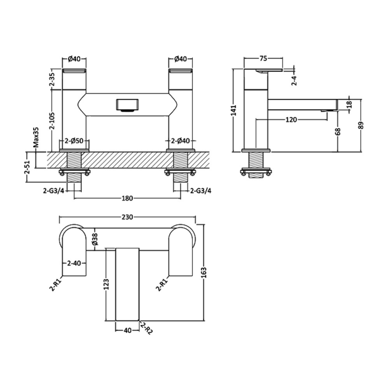 • Stunning pillar mounted bath filler giving your bathroom a stylish finish