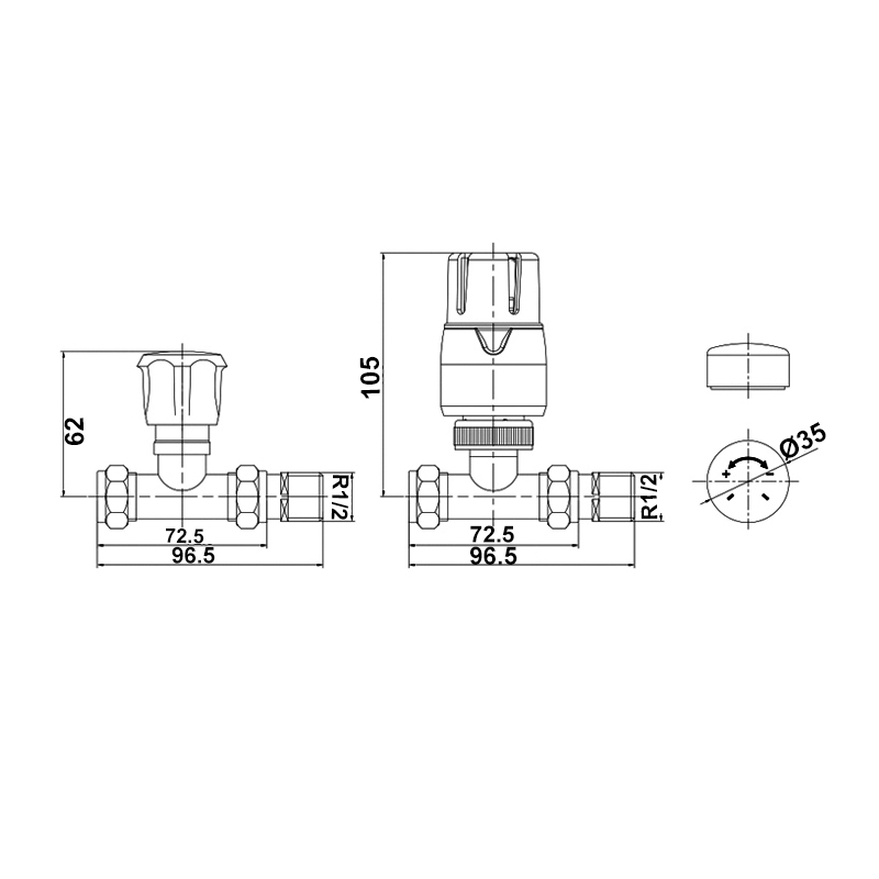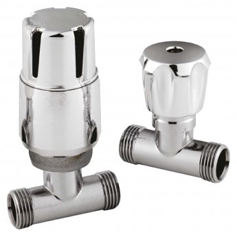 Hudson Reed Straight Thermostatic Bi-Directional Radiator Valves Pair Lockshield - Chrome | Product Image Hudson Reed Straight Thermostatic Bi-Directional Radiator Valves Pair Lockshield - Chrome